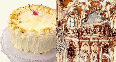 Japonya’da yüzlerce yıl boyunca Zen felsefesinin vaaz ettiği minimalizm/yalınlık, mimari dilde hüküm sürerken, hem sushilerin ve hem tapınakların oluşturulmasında kullanıldı. Böylesi bir ilişkinin tam tersini ise Bavyera Rokoko’su oluşturuyor. 18.yy Almanya’sında servis edilen tatlılar hafif ve şekerli iken iç mekanlardaki zengin bezemeler bu tatlıların sunumlarına ilham verirdi. Bavyera kremasına tüketilebilir bir rokoko olarak bakabiliriz.