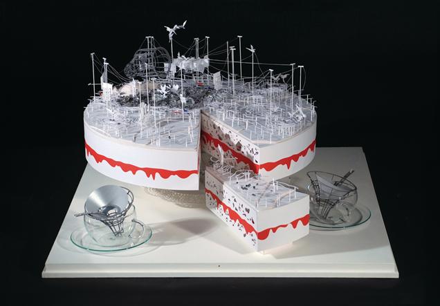 Mimarlar genellikle yemek aksesuarları tasarlarlar: servisler, bardaklar, yemek masaları ve koltuklar. Bir gün yemek tasarımında buluşmaları ise kaçınılmazdı. Bu yaz New York’ta, Greyston Vakfı’na bağış toplamak için mimarlar tarafından tasarlanmış pastaların satıldığı bir açık arttırma düzenlendi. Katılımcılar arasında Frank Gehry, Rafael Viñoly, Steven Holl ve Richard Meier gibi ünlü mimarlık simaları bulunuyordu. Organizasyonun amacı, yalnızca iyi bir amaç için iyi yemek servis etmek iken, elbette, star mimarların imza stillerini bir kez daha gözler önüne sermeleri için bir başka fırsat daha oluşturdu. Tek bir farkla: Bu kez ürünler yenilebilirdi. Gehry’nin eskizleri bir fırıncının Bilbao’su gibi yuvarlanan dalgaları betimliyordu. Şaşırtıcı olmayan bir şekilde Meier’in katılımı ‘beyaz pasta’ ile oldu; porselen panellerin yerine kullanılan pudra şekeri-limon örtüsü, Atlanta’daki High Museum’un tarifiyle uyuşuyordu.